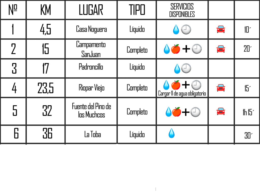 - Sistema de hidratación (mínimo 1 litro) 1 hora